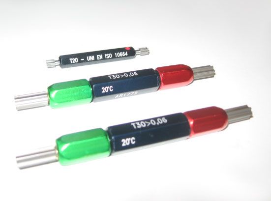 La nostra produzione standard comprende tamponi filettati passa/non passa per il controllo delle filettature interne e anelli filettati per il controllo delle filettature esterne. Le tolleranze standard di accoppiamenti vite-madrevite sono 6H-6g, ma disponiamo anche di tolleranze maggiorate o minorate, come 6e, 6g, 2m, 6f, sk6, per soddisfare esigenze specifiche.